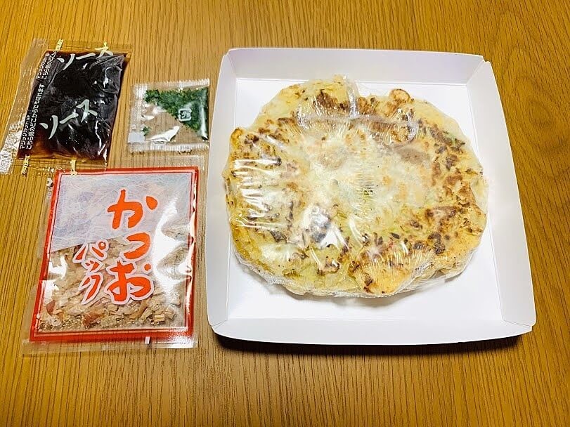 あとで見たら、原材料にも紅しょうがの文字が。軽いので一人で一枚ペロリですね。ソースもたっぷりなので最後まで飽きることなく完食。