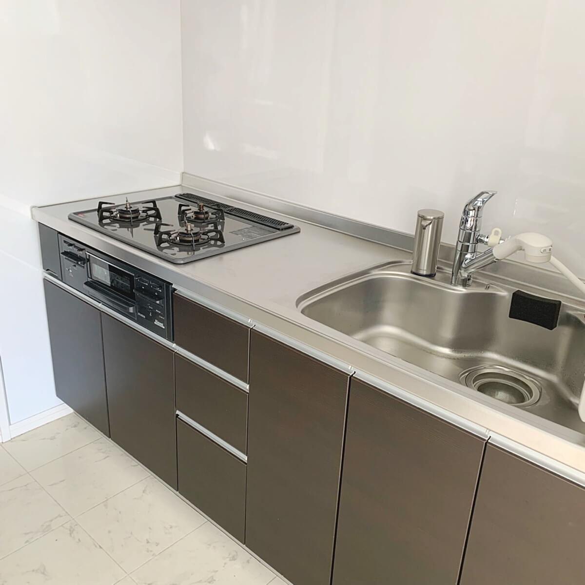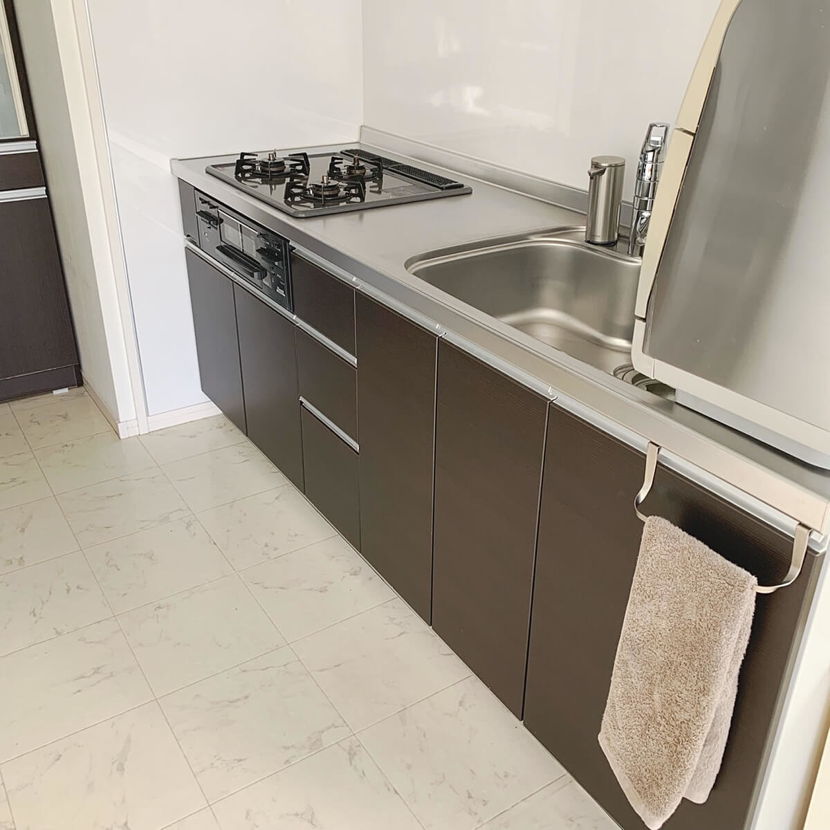 また、タオルもキッチンと同系色にすることで全体的に落ち着いた雰囲気になりました。