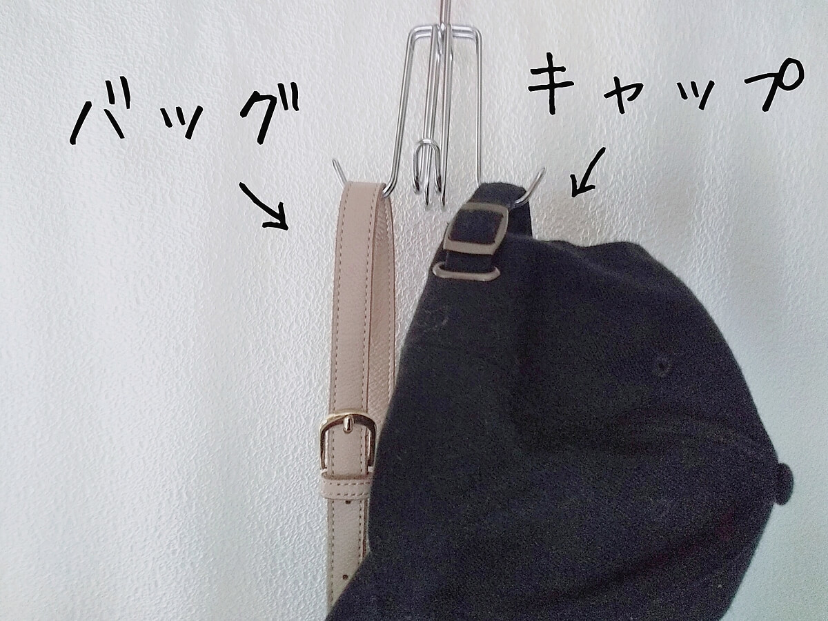 バッグやアジャスターつきのキャップも、こんな風に引っかけられます。 お出かけ前にパッと手に取りたいアイテムに使うと、スムーズに外出できそうですよね。