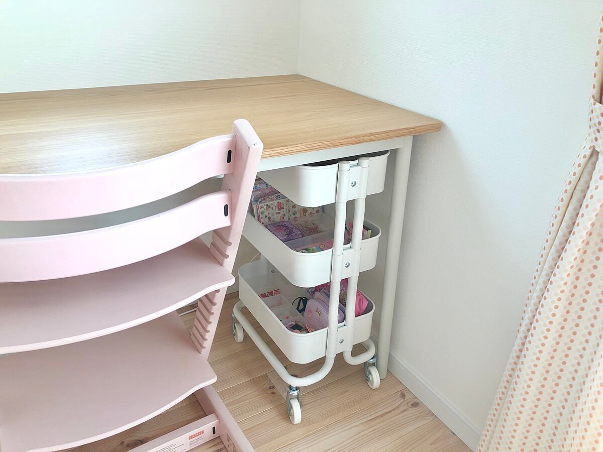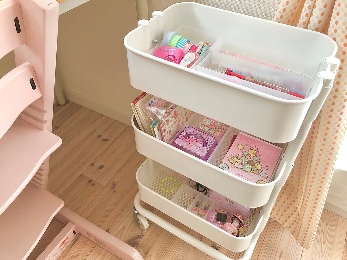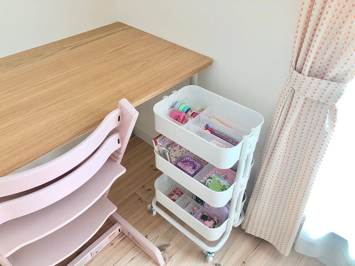 鉛筆などの文房具を入れるために、キャスター付きのワゴンを使用しています。