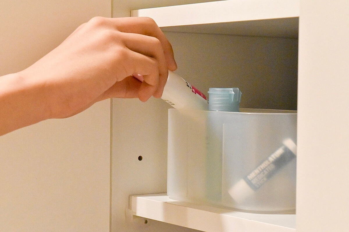 歯ブラシや洗顔、石鹸など毎日家族が使うものは収納せずに見せる収納(出したまま収納)するとより楽です。
