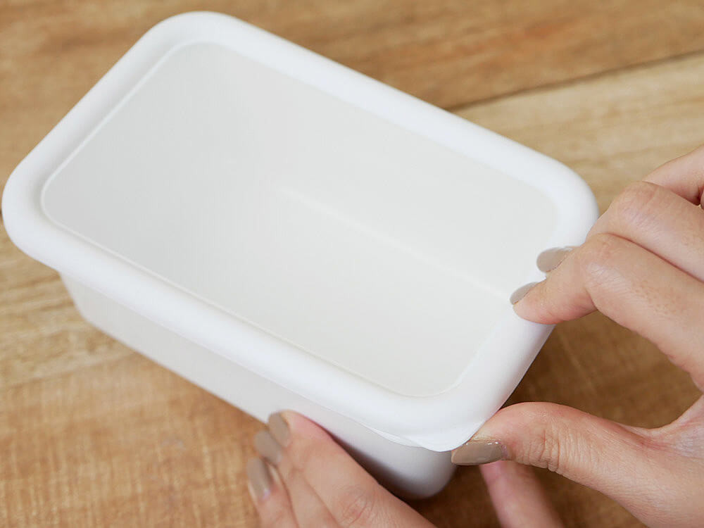 食材の保存に最適で、白いコンテナは冷蔵庫に入れても清潔感がありスッキリとした印象に。