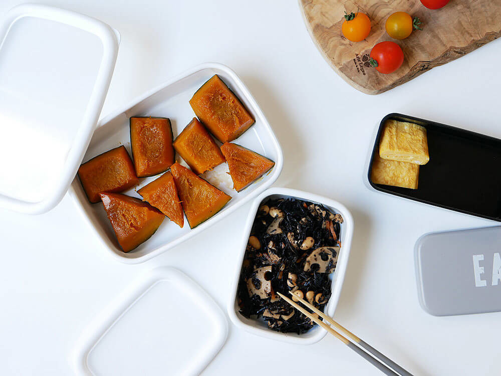 白くて四角いシンプルなコンテナは、そのまま食卓に並べても◎