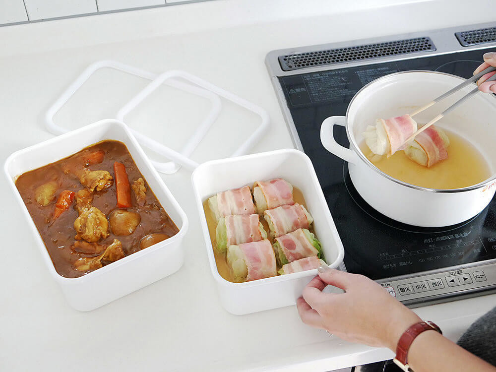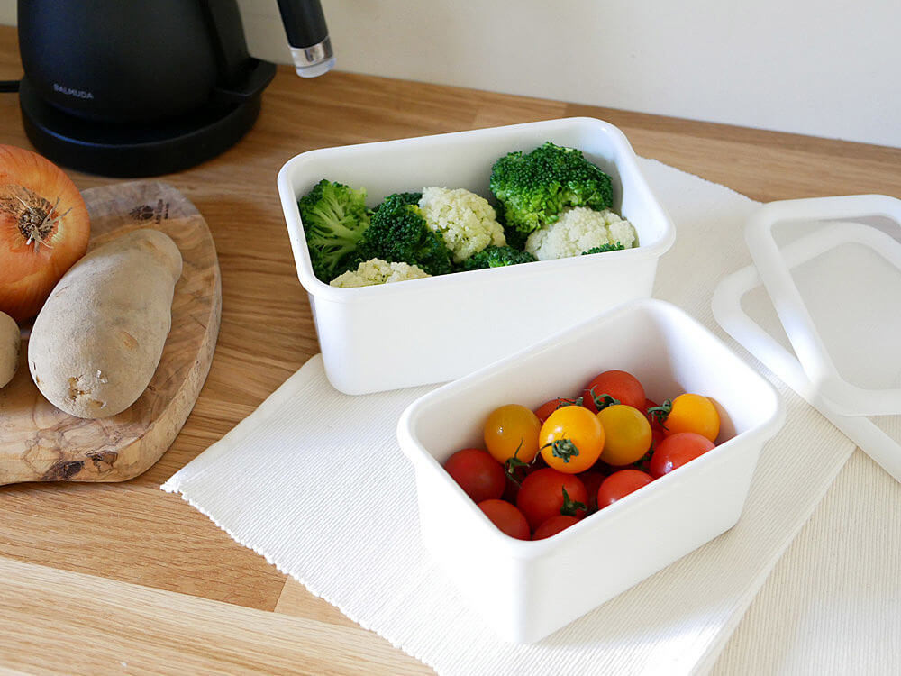 週末に一気に作り置きおかずを作るという方や、たくさん作ったおかずをお弁当用に保存したいという方にもおすすめしたいホーローコンテナ。