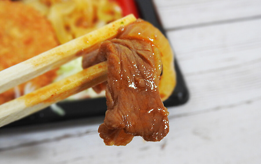 8割方は夫に食べてもらいましたが、夫としては「ボリュームには問題なし」だったようです。お弁当チェーン店よりは値段がやや高めの設定ではあるものの、大きなコロッケと牛カルビが入っており、お弁当の実物をみても物足りなさはとくに感じません。