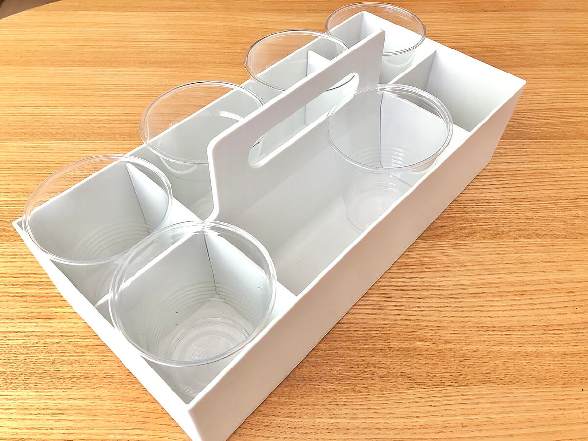 コップは、キャリーボックスの汚れ防止にもなっています。