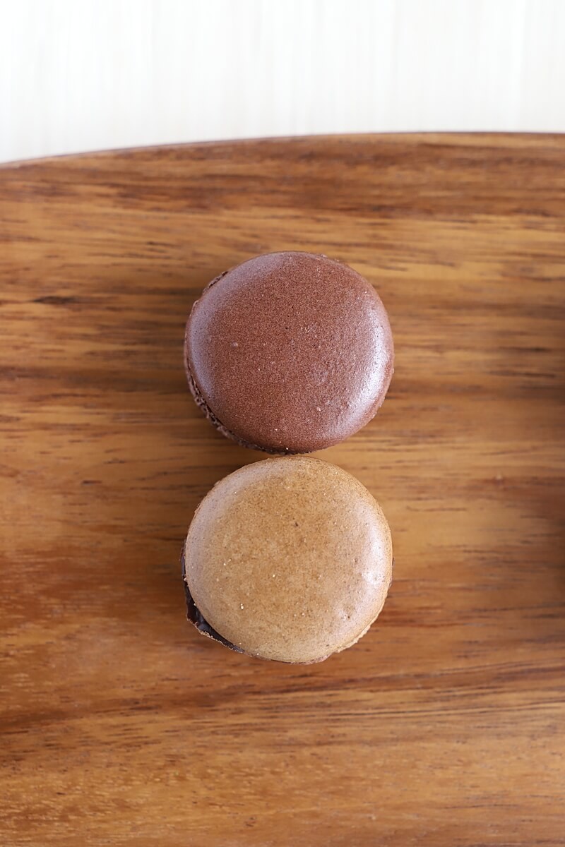 チョコフレーバーをみると、上のコストコのマカロンの方が色が濃いですね。