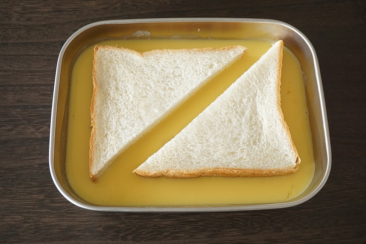 フレンチトーストと言えば、卵・牛乳・砂糖などを混ぜた卵液に食パンを浸して作るのが一般的ですが、今回はこちらの商品を使ってみました。