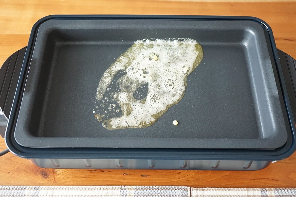 (3) ホットプレートを中ぐらいの熱さで温め、バターを溶かします。