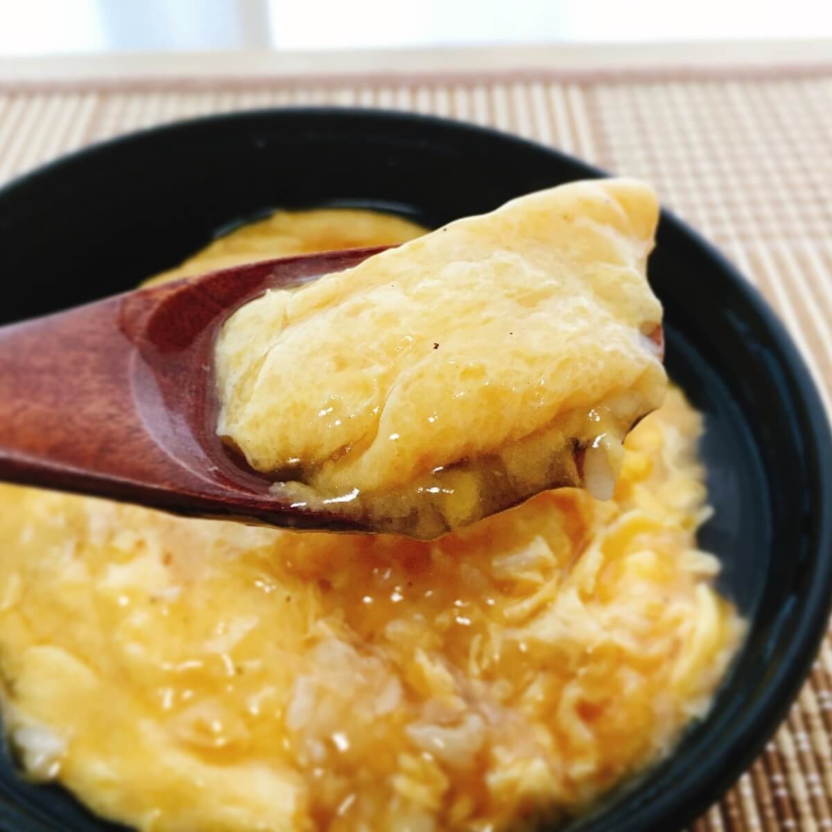 写真でこのふわとろ感は伝わるでしょうか?卵料理が好きな方なら、口の中に広がる優しい食感に歓喜するはず。卵とご飯の間には白ゴマが振ってあるので、プチプチとした食感も楽しめます。