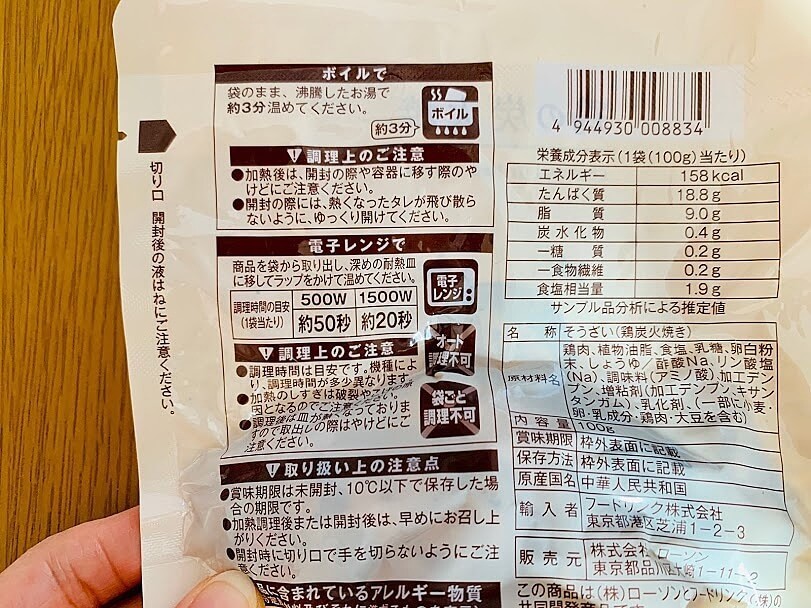ただ炭火焼と違う点は、レンジで温める際にこのまま袋ごと入れてOKなこと。蒸気口がありますね。