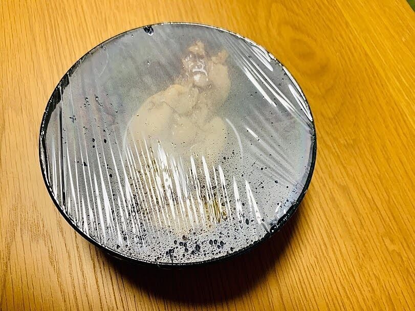 調理方法は2種類。レンジでチンするか、袋のままボイルするか。レンジでチンする際は、袋から中身を取り出して、ラップをかけて調理します。レンジだと1分かかりません!