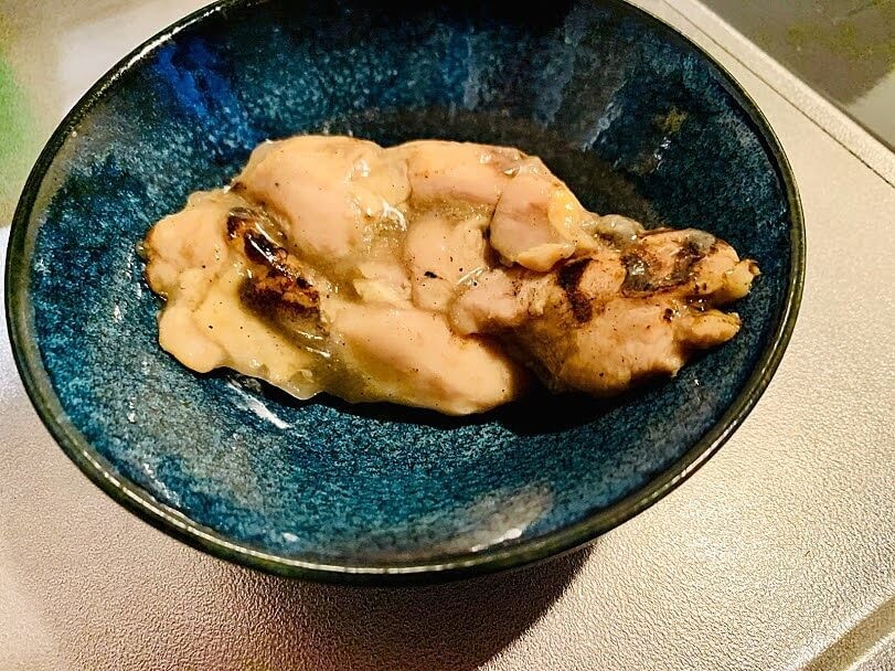食べてみました。期待通りのぷりぷりとした食感。炭火の焦げがまたいい具合でアクセントになりますね。タレがちょっととろみのある塩だれで、お肉によく絡んでとっても合う~!