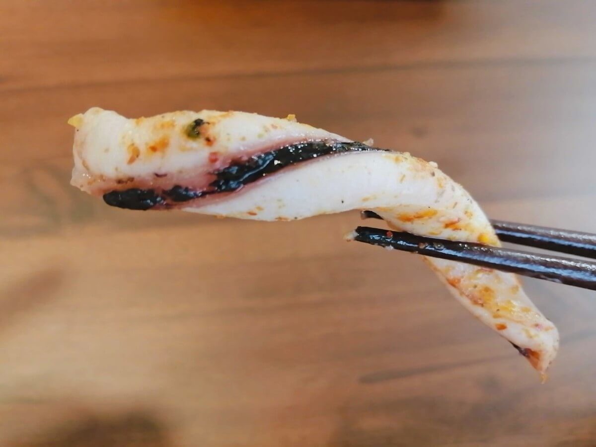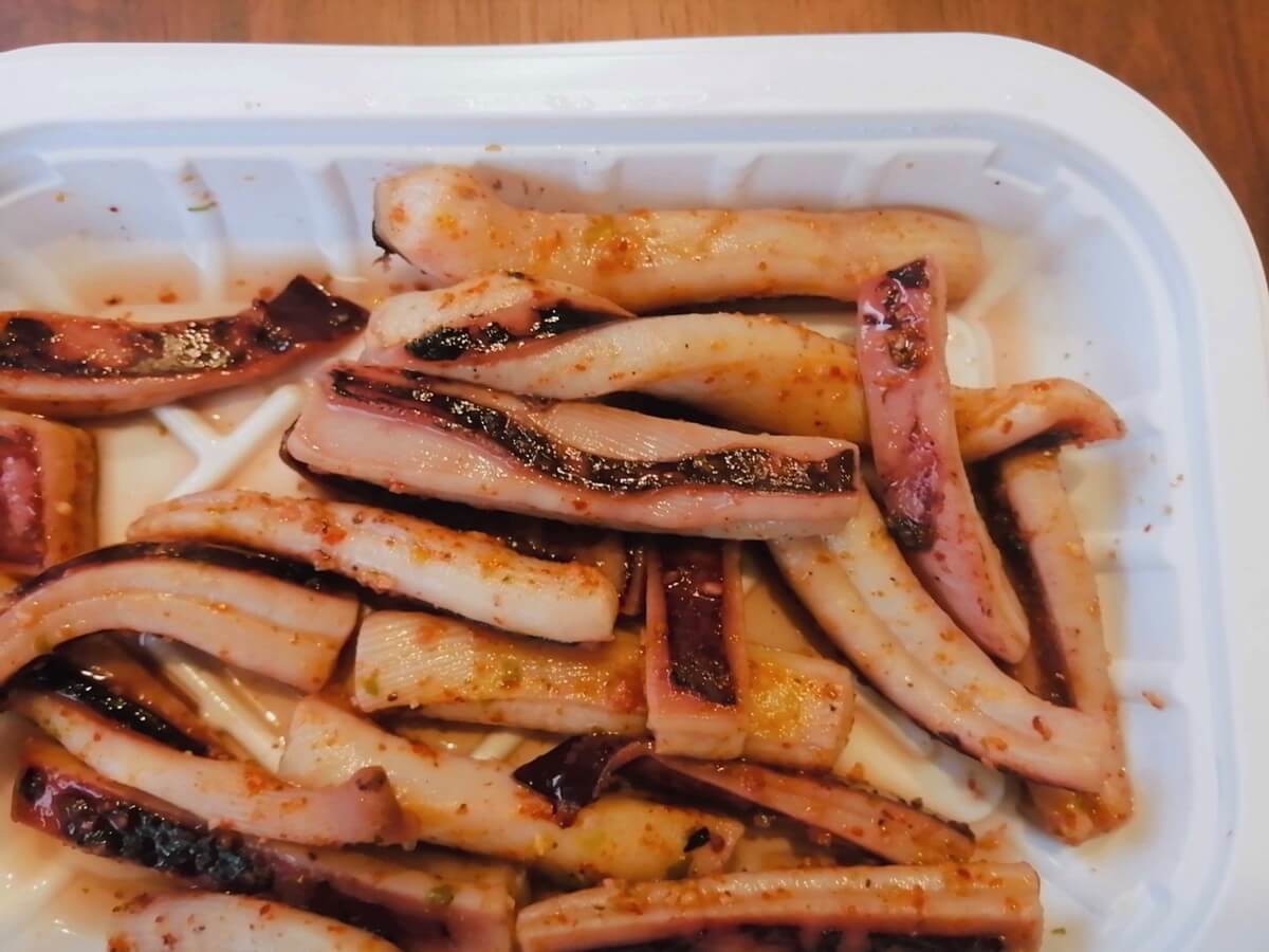 味付けもばっちり。七味のピリ辛加減がちょうどいいんです。ごはんが恋しくなるほど辛さが強くないので、くどさはありません。いかを最大限楽しめる辛さですね。