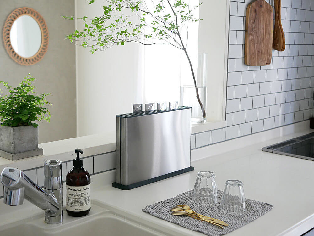 ステンレスでスタイリッシュなので作業台に出したままでも違和感なく、キッチンがぐんとおしゃれな空間に仕上がります。