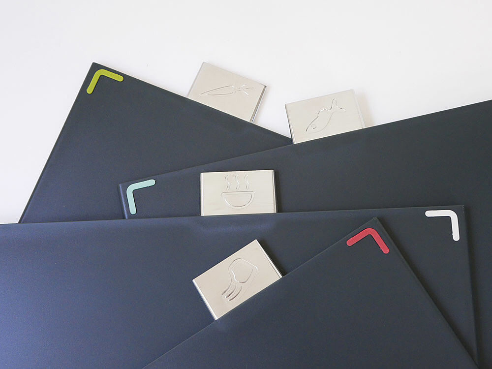 ステンレスのケースにダークカラーがシックなまな板ですが、裏表の四隅に付いた滑り止めはとってもカラフル。 この滑り止めにだけ色が付いていて、アクセントになっています。