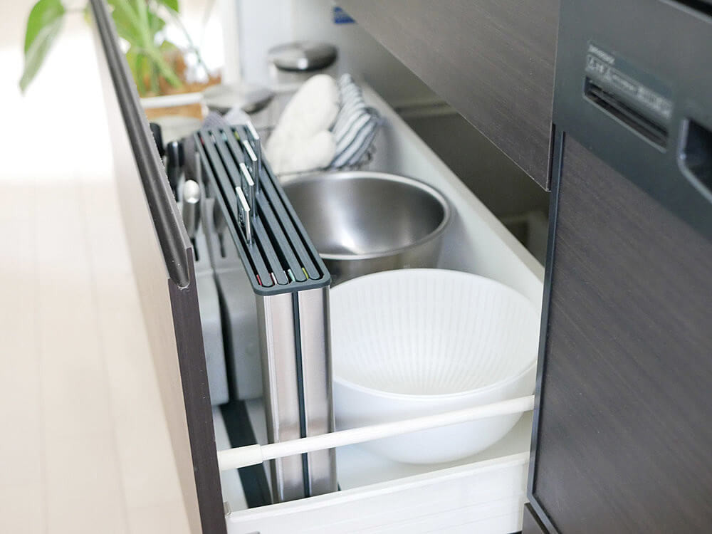 持った瞬間ズシンと重い印象でしたが、まな板を引き出す時も安定感がありぐらつくこともなく、この重さがさらに高級感を増している気もします。