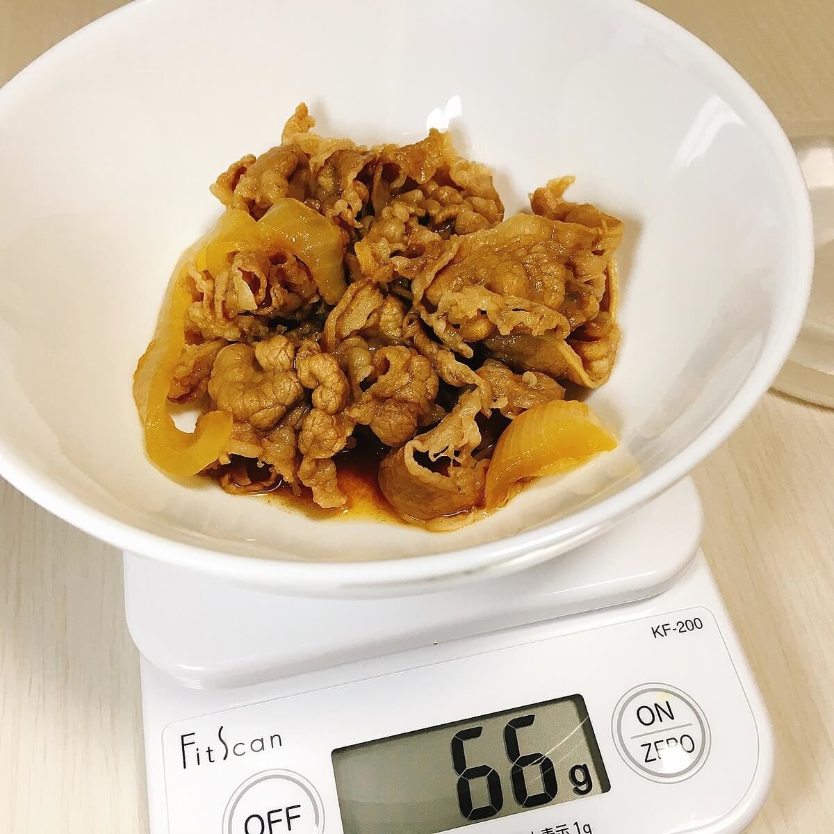 どれぐらい増えたのか量ってみると66g(器の重さは除いています)でした。 牛丼並盛にのっている半分ぐらいの量だと思います。