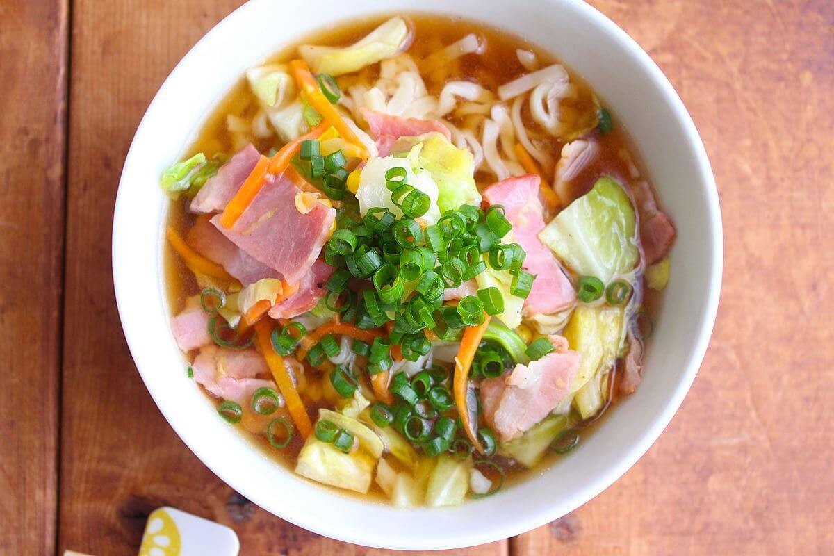 本来の喜多方ラーメンはメンマやチャーシューがのっているイメージですが、家庭で食べる時は、具は好きなものでOKですよね!