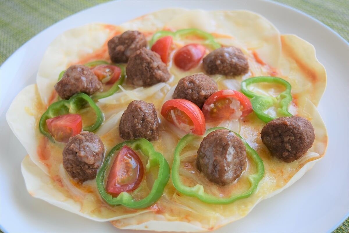 餃子の皮で「ミートボールのクリスピーピザ」