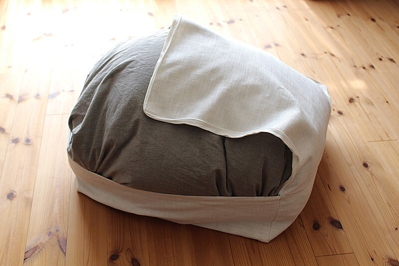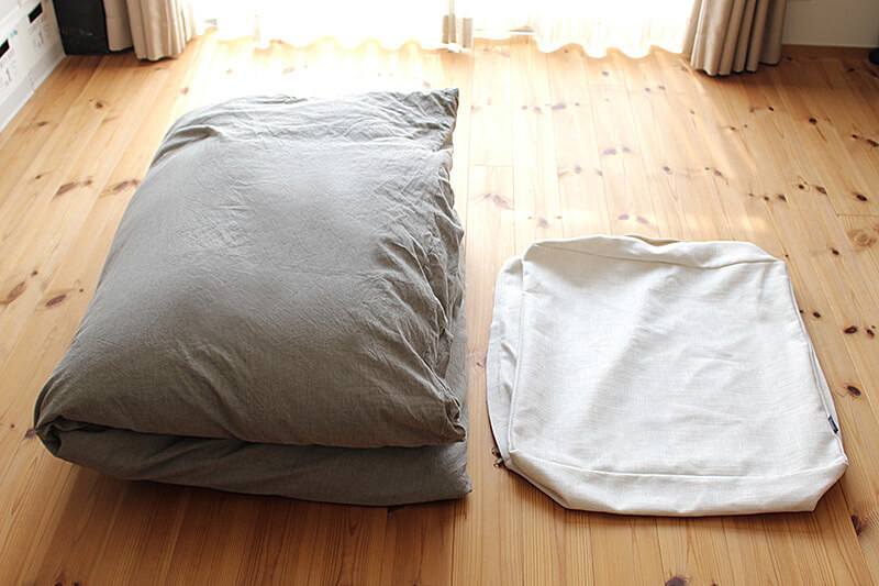 「ボンモマン」の掛け布団ケースは、座布団をひと回り大きくして厚みを出したようなサイズ感。