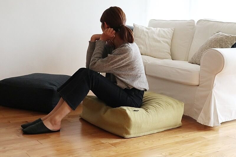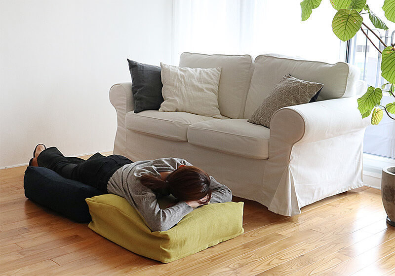 しっかりとした大きさがあるので体全体をゆだねることができ、普通のクッションよりもリラックスできます。男性でもゆったり使えそう。