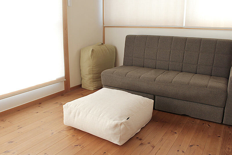 来客時でも自信を持って置きっぱなしにできますし、大きなクッションは子どもの遊び道具としても活躍しています。