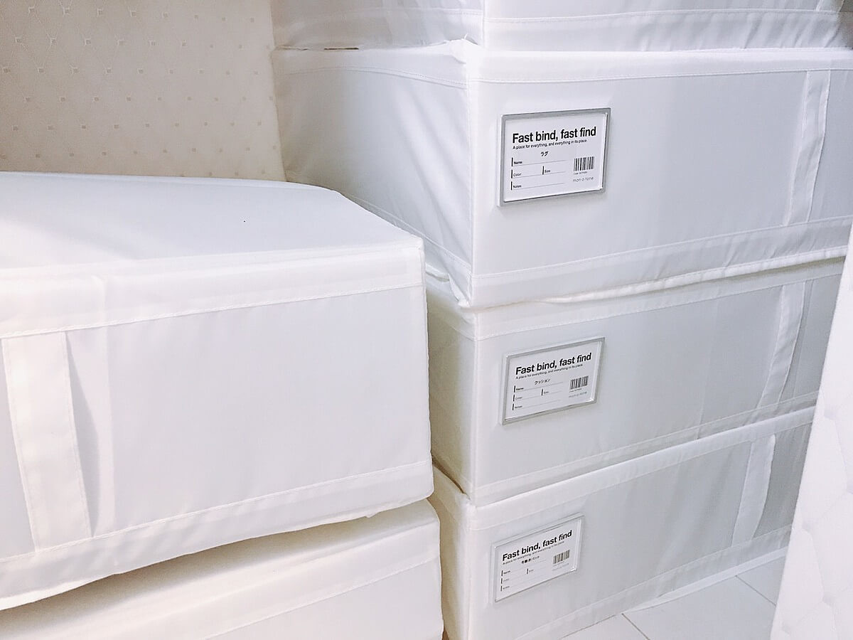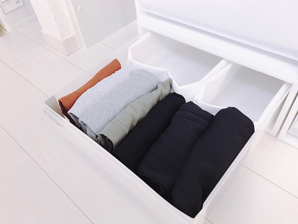 ショップのようなキレイな畳み方はせず、さっと畳んで引き出しケースに収納。
