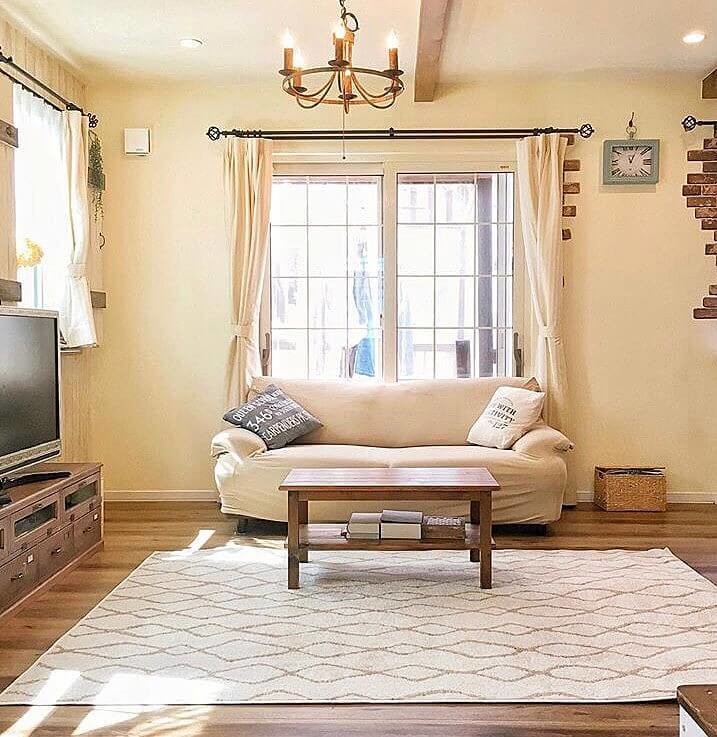 リビングではコーヒーテーブルやテレビ台など、大型家具を天然木にすることで温もりのあるインテリアになります。 背の高い家具を置くと圧迫感が出るので、できるだけ背の低い家具を選ぶのもオススメ!