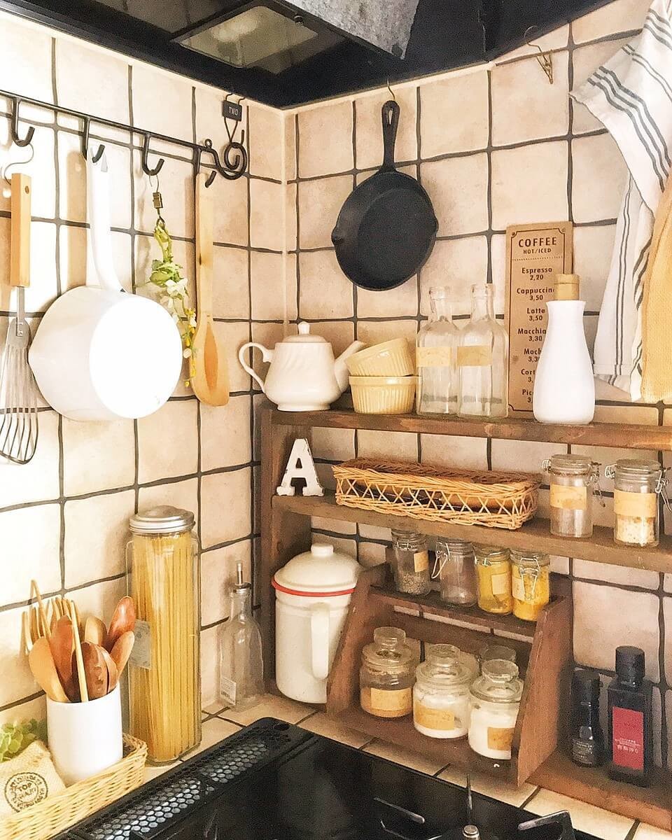 カトラリーも木素材に統一することで、見せる収納でもごちゃつきません。使いたい時にさっと取れるのも便利なんです。
