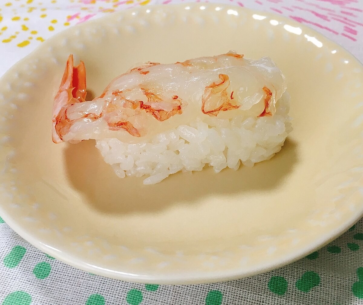 身が厚くて食べ応えがあります。えびのぷりぷり感を噛むたびに味わえる、えび好きにはたまらないネタです。