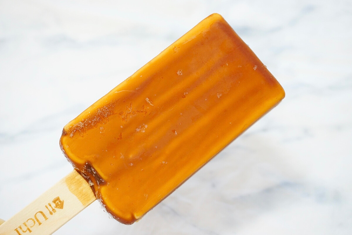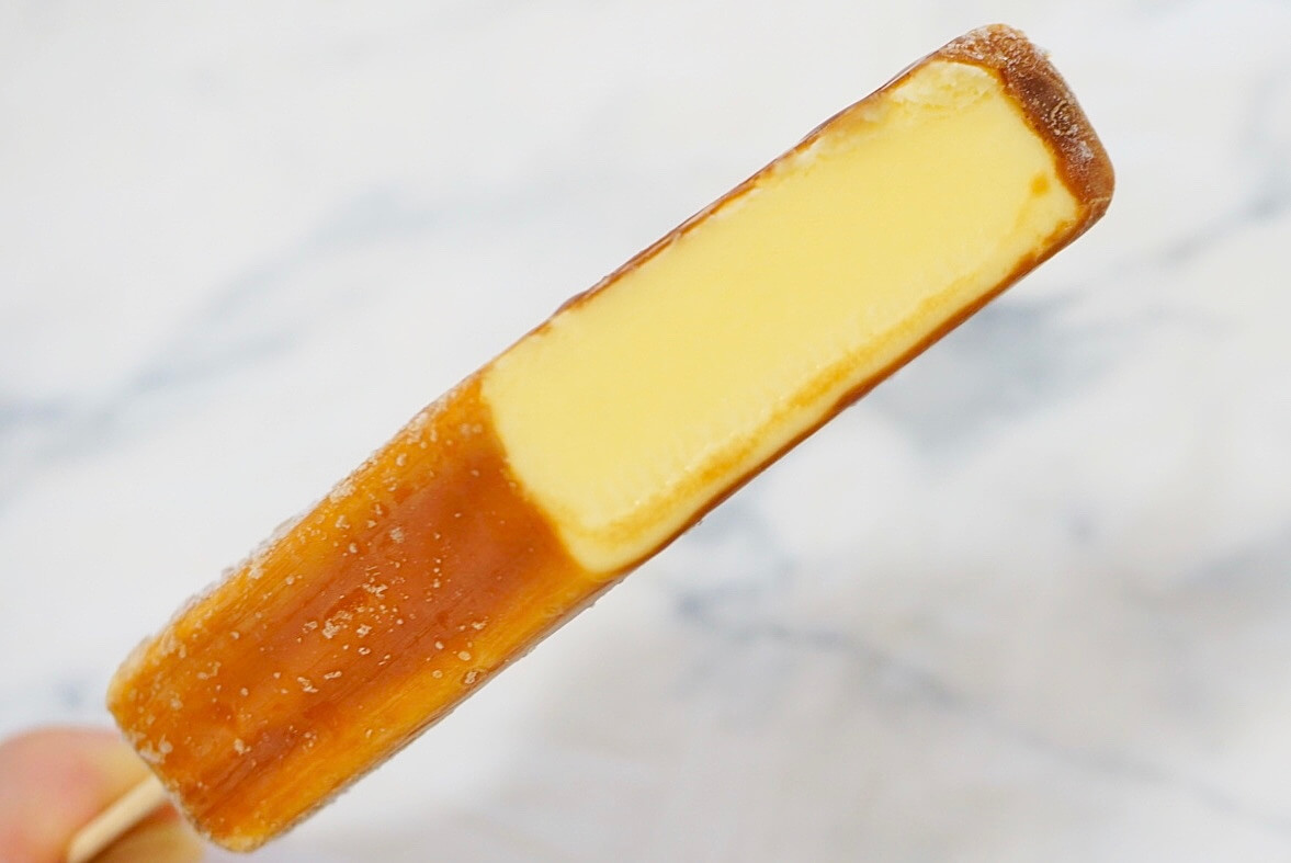 大ヒット商品「バスチー」の濃厚な風味と、なめらかさを再現したアイスバーで、クリームチーズと北海産生クリームを使用したチーズアイスが、ほろにがカラメル風のコーチングで包まれています。