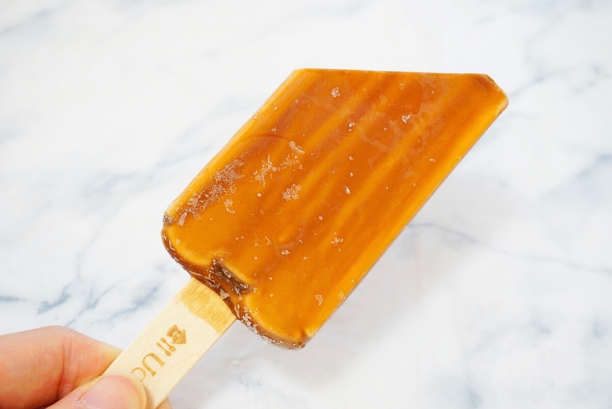 口に含むと、薄付きのカラメルがカリッと割れてしっかりとほろ苦く、後からチーズケーキアイスの濃厚さが口に広がります。