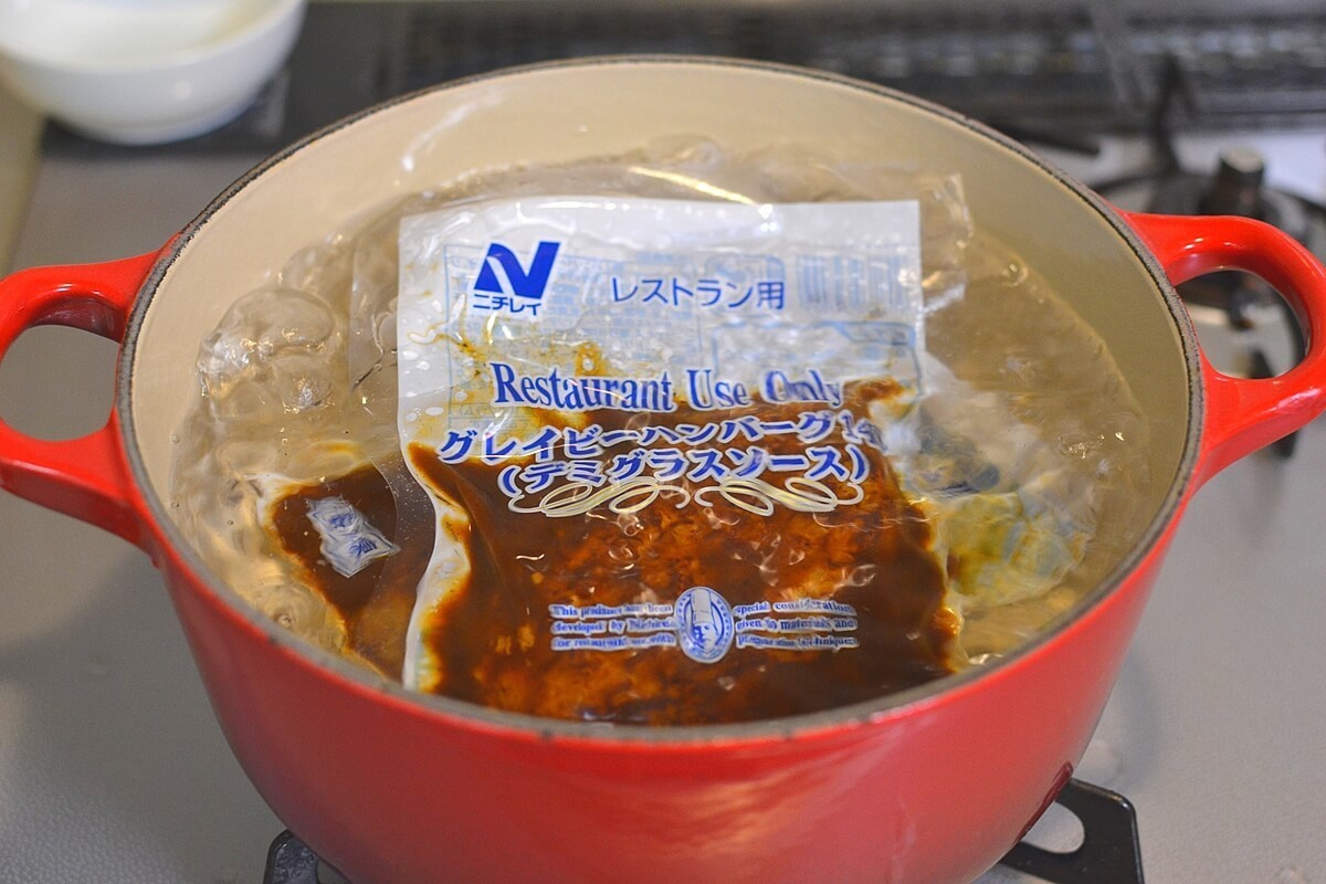 調理方法は、沸騰したお湯に凍ったままの商品を袋ごと入れて13分温めるだけ!
