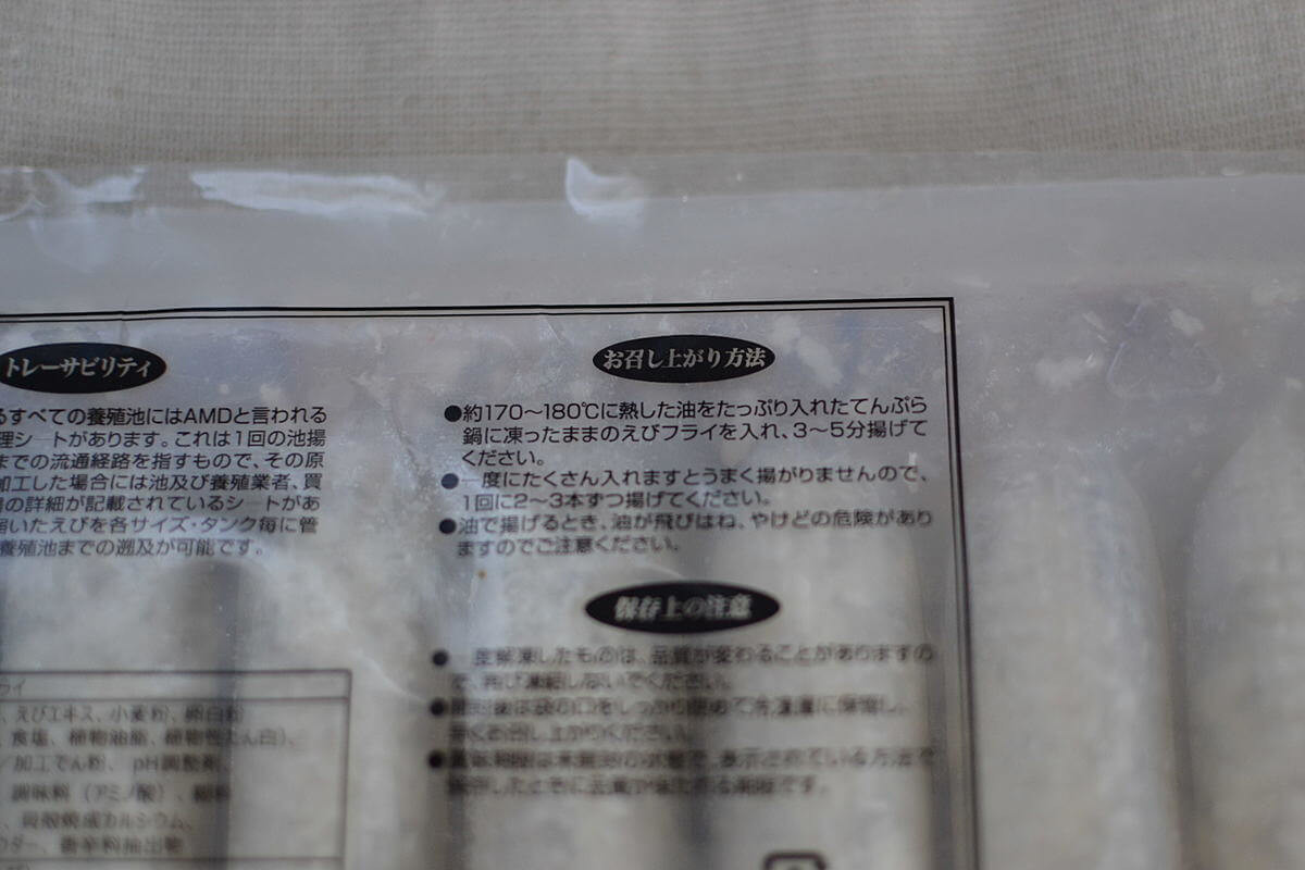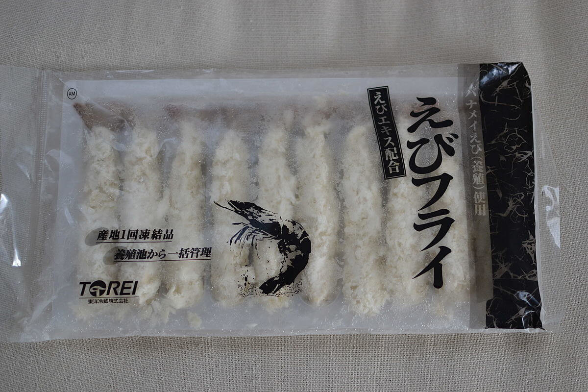 次に紹介するのは、業務スーパーの冷凍食品より「エビフライ」です。