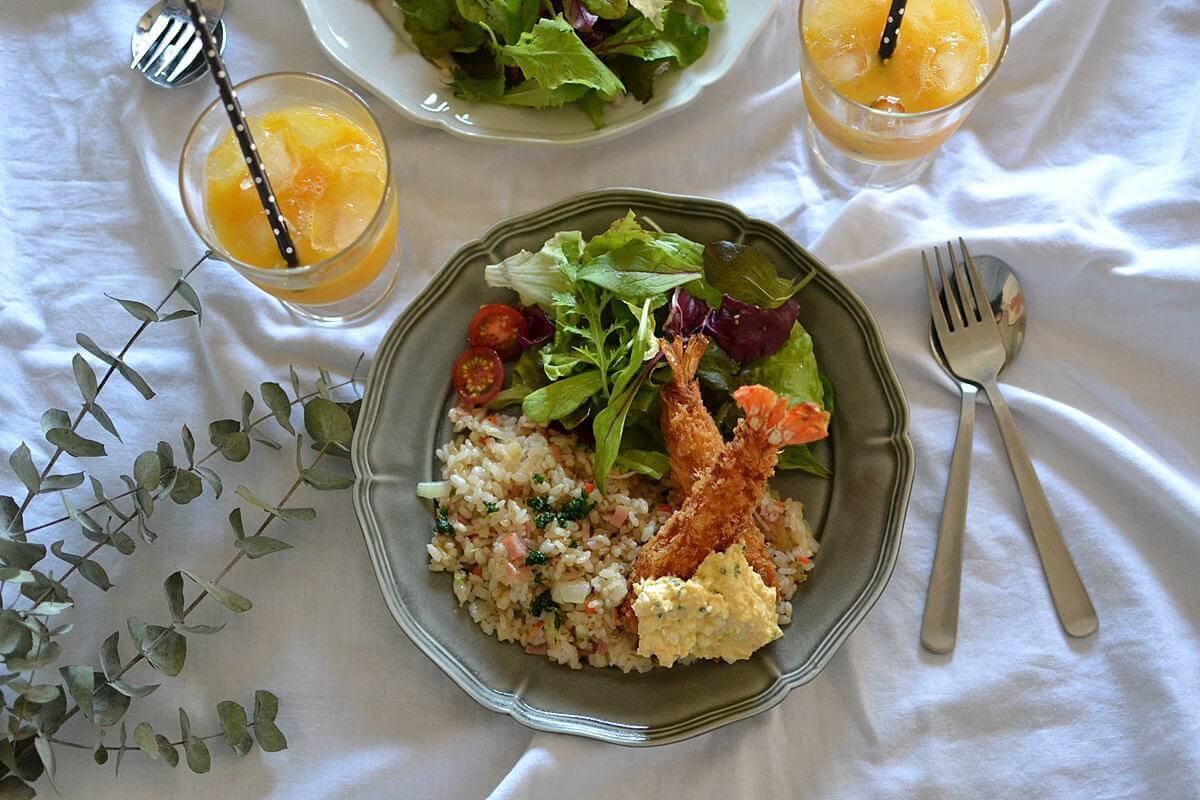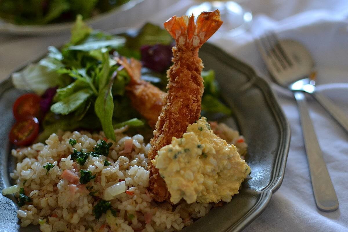 ピラフを作ってエビフライをトッピングしてタルタルソースを添えたら、あっという間に”お子様ランチ風”ワンプレートのできあがりです。