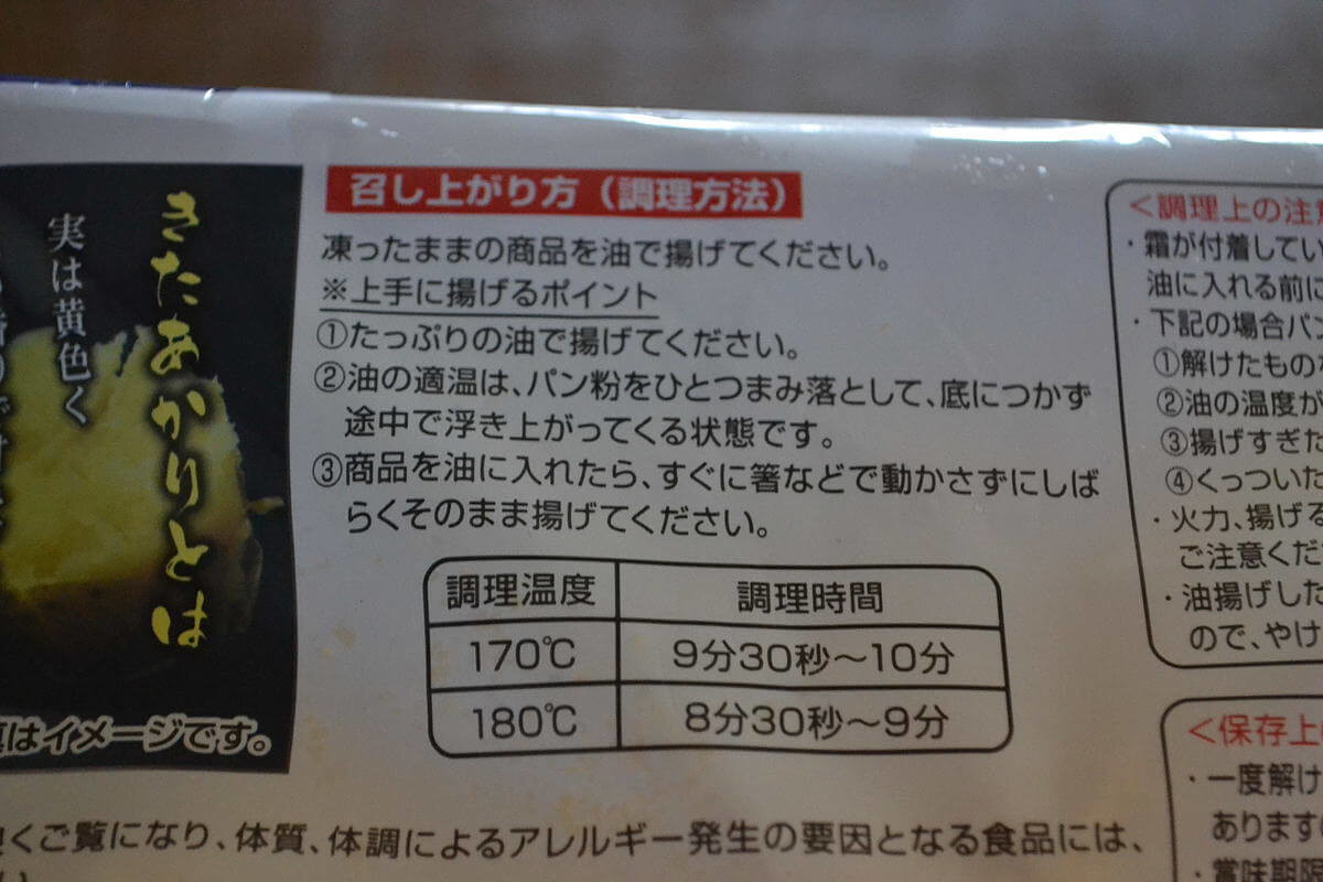 調理方法は、170~180℃の油で8分半~10分程度揚げるだけ。