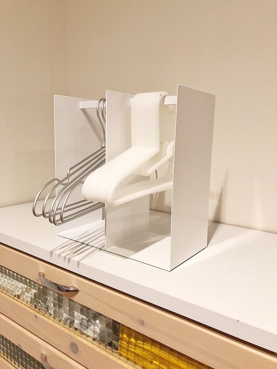 シンプルなデザインながら、ハンガー類がスッキリ収まるようにデザインされているこの形。売られているのを見つけた瞬間に「絶対欲しい!!」と思ったものでした。