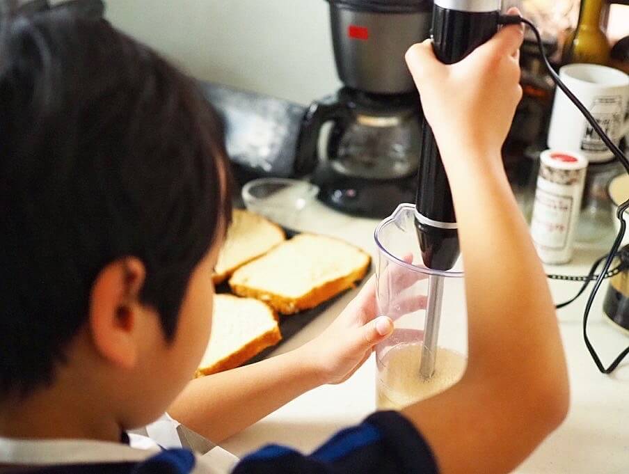 ハンドブレンダーを使えば、30秒程度でマヨネーズになりますよ。