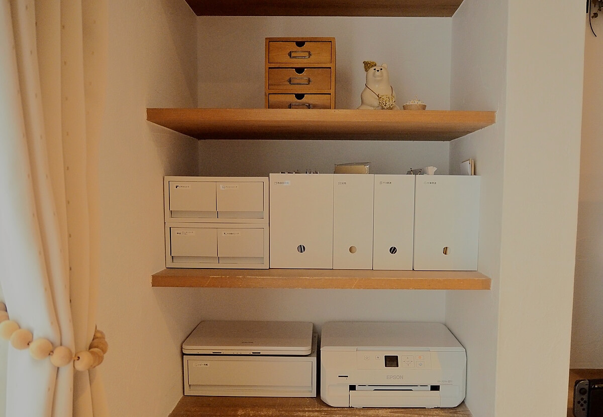 我が家はこの収納にしてから、プリンター周りの収納のリバウンドが起こっていません。アイテムごとに、「どうすれば使い勝手が良くなるか」「取り出しやすくなるか」などを考えながら、ご自宅にぴったりハマる収納を模索してみて下さいね。