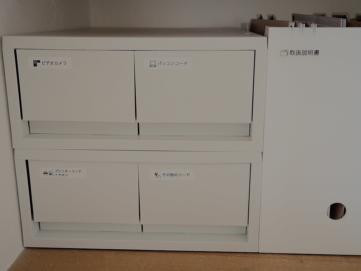 完全にコードのお部屋を別にして収納することで、コード同士が絡まることもなくなり、ストレスフリーになりました!