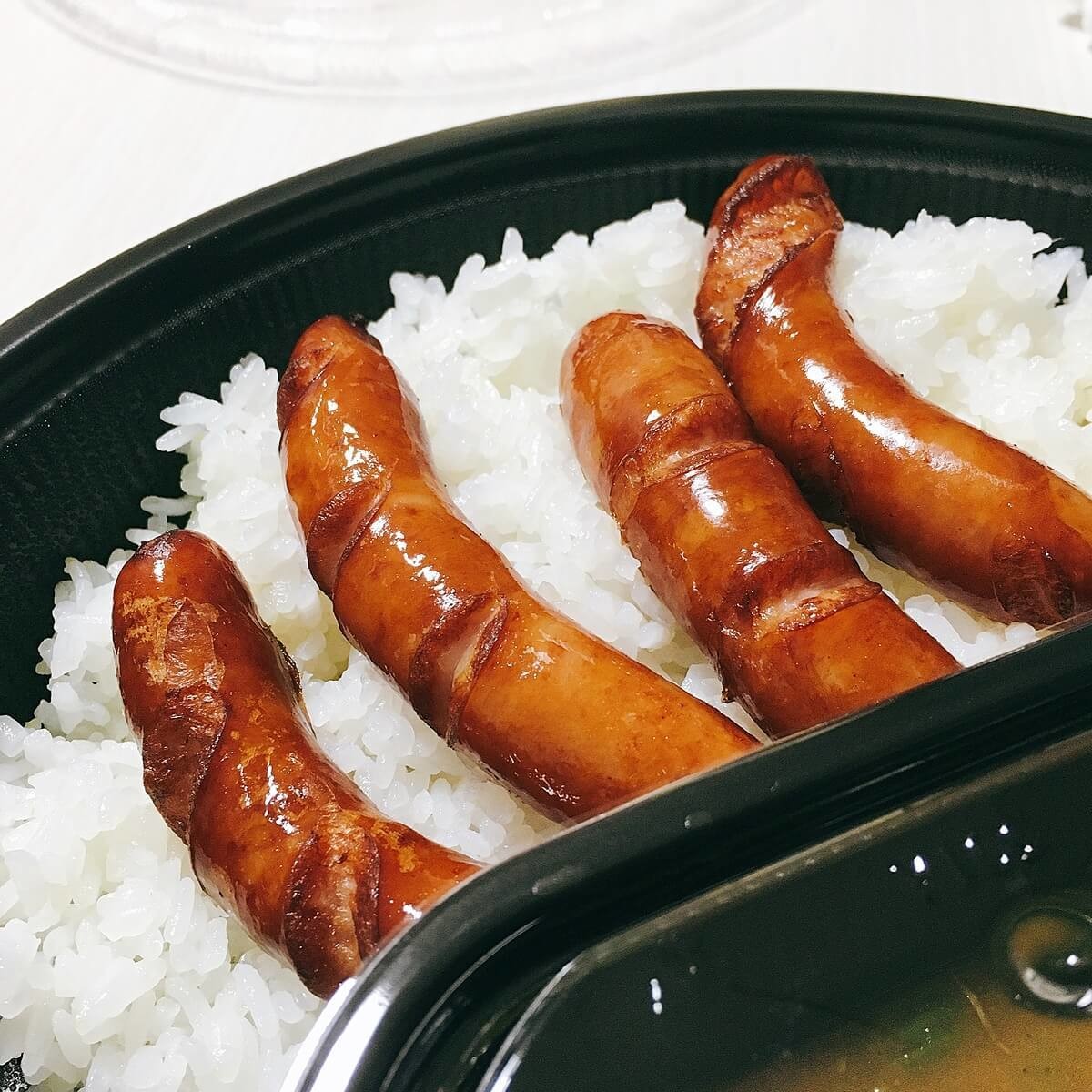 フタを開けた瞬間にソーセージのいい香りが。 揚げたソーセージはぎゅっと締まってうまみが閉じ込められています。カリカリのソーセージを噛むと肉汁がどばっと出てきてこれだけでもたまらない美味しさ。