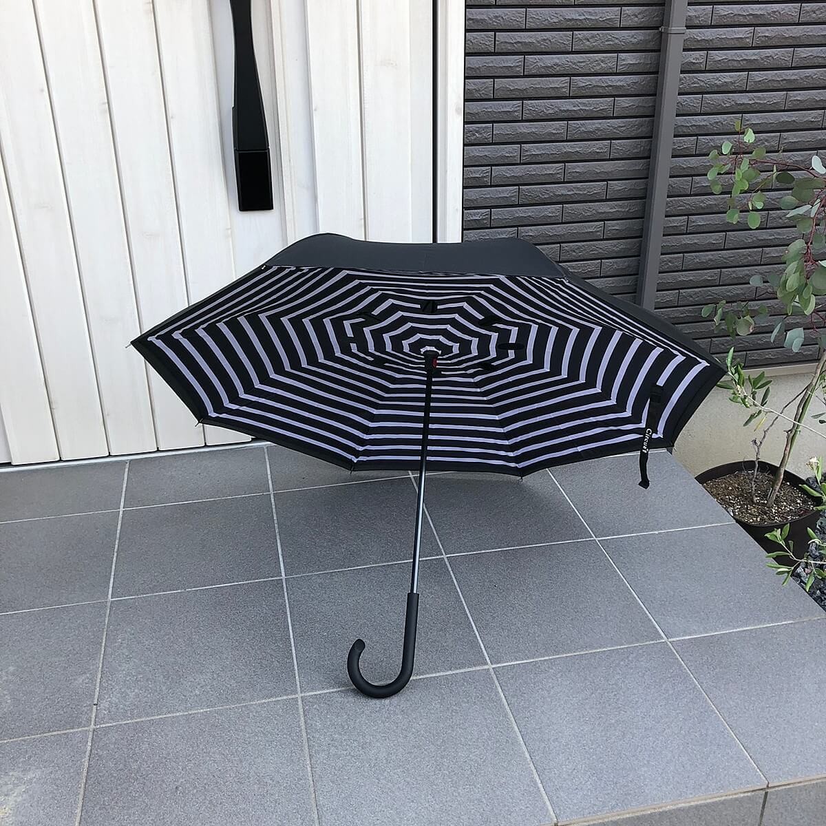 【5000円以上で10%OFF!クーポンコード配布中】晴雨兼用 逆さに開く2重傘 circus ストライプ×ブラック