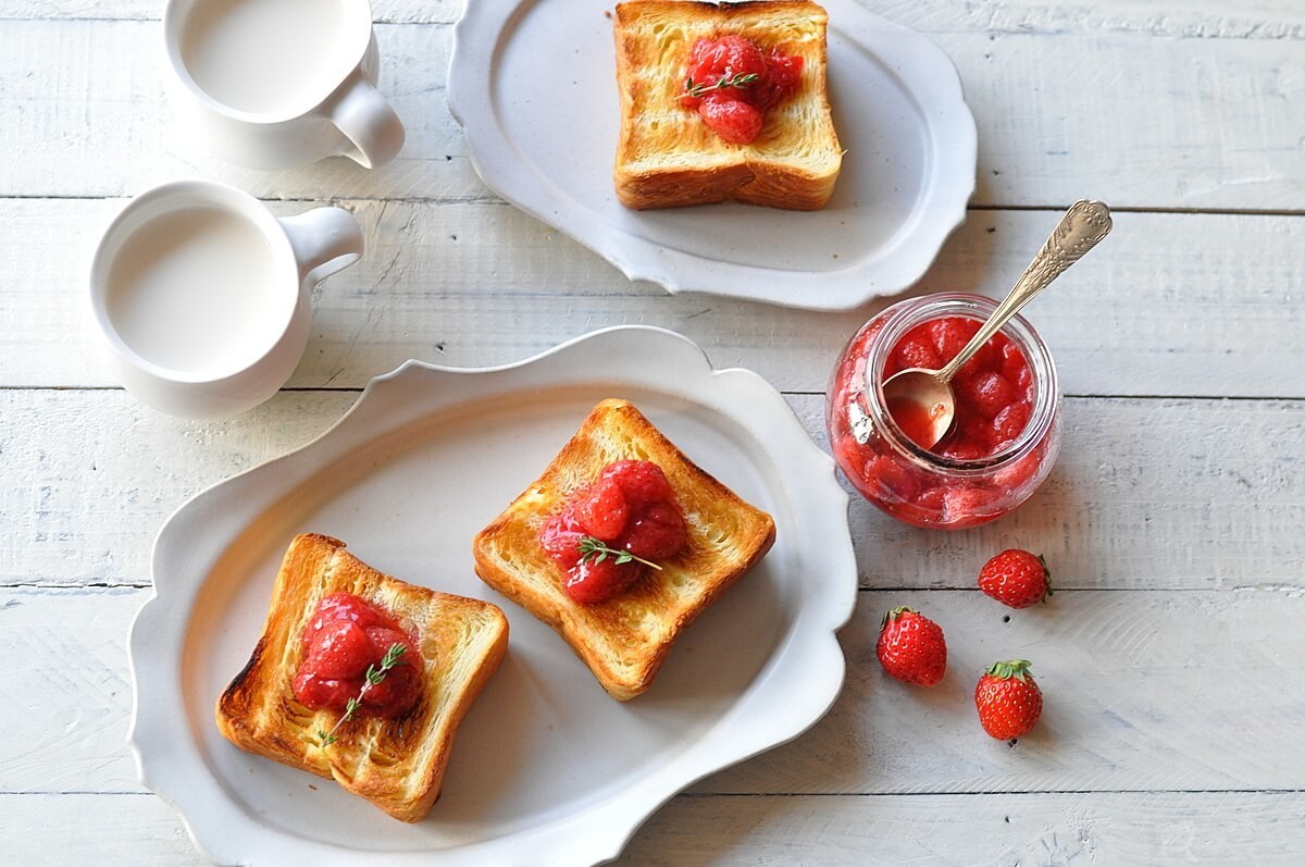 サクサクトーストにとろりと甘酸っぱいいちごジャム。朝からしあわせ時間です。