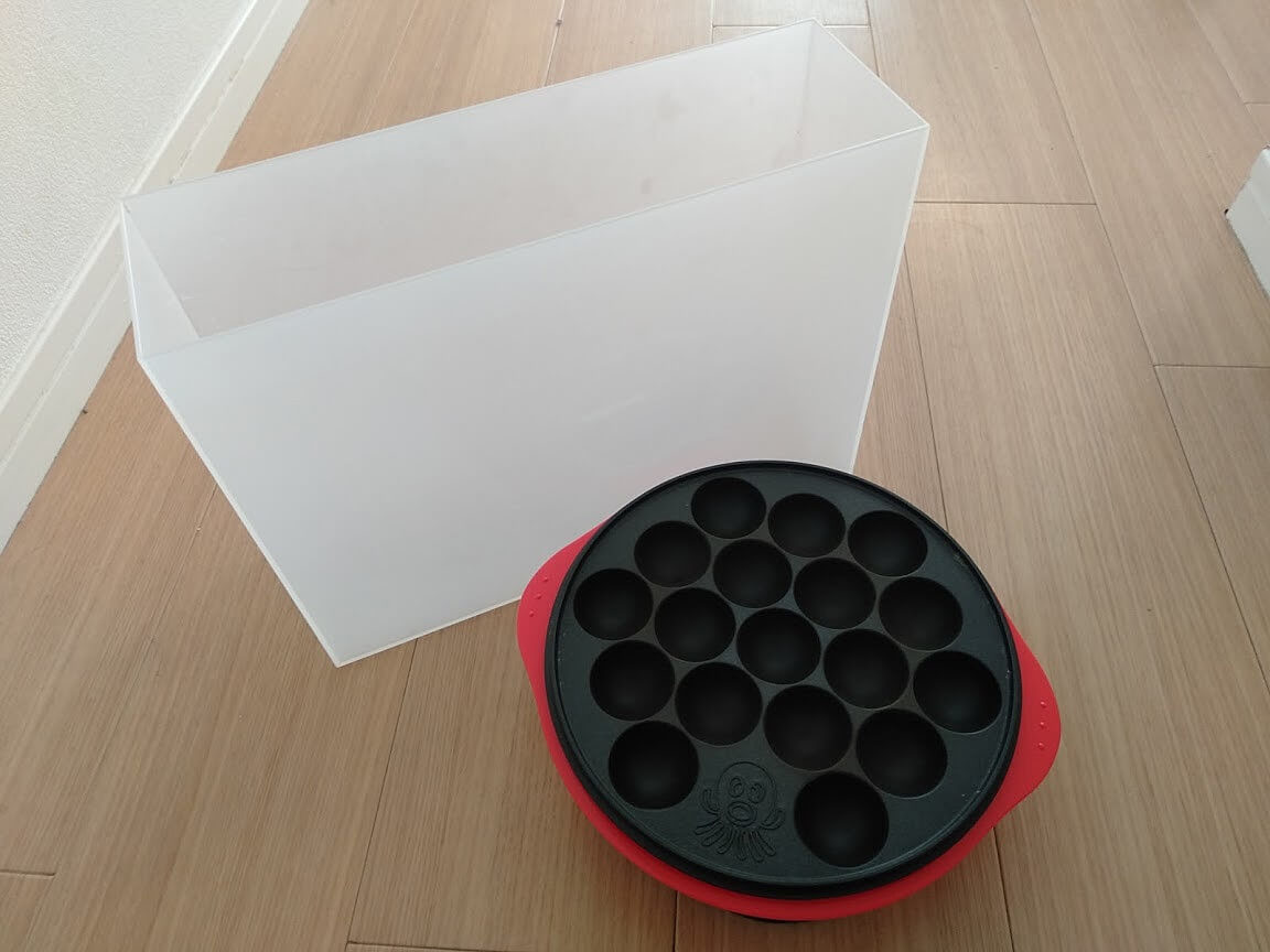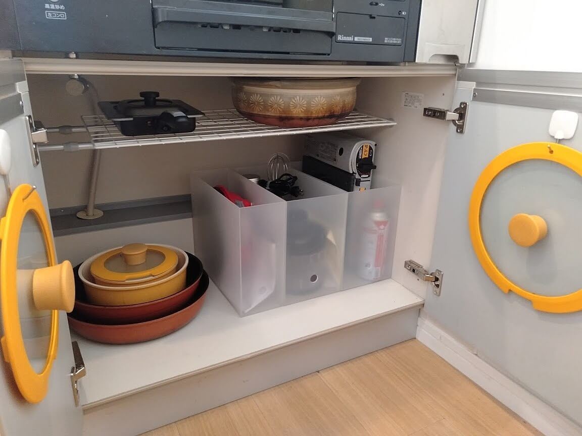 また、横にスペースを取るカセットコンロやたこ焼き器なども、ファイルボックスに収納することで自立させることができるので、収納スペースにも無駄がなくなります。