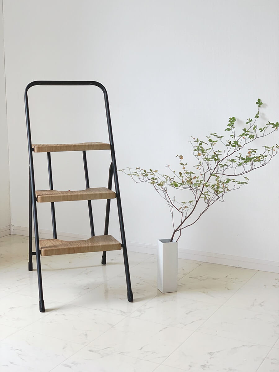 我が家で使っている脚立はとても軽くて小学一年生の次男でも楽々と持ち運ぶことができます。お家に馴染む主張しすぎないデザインと抜群の安定性。