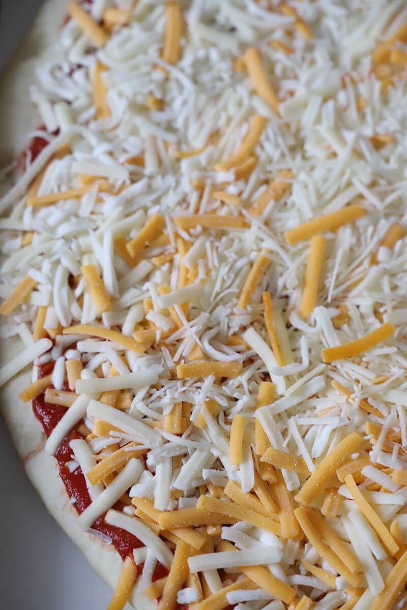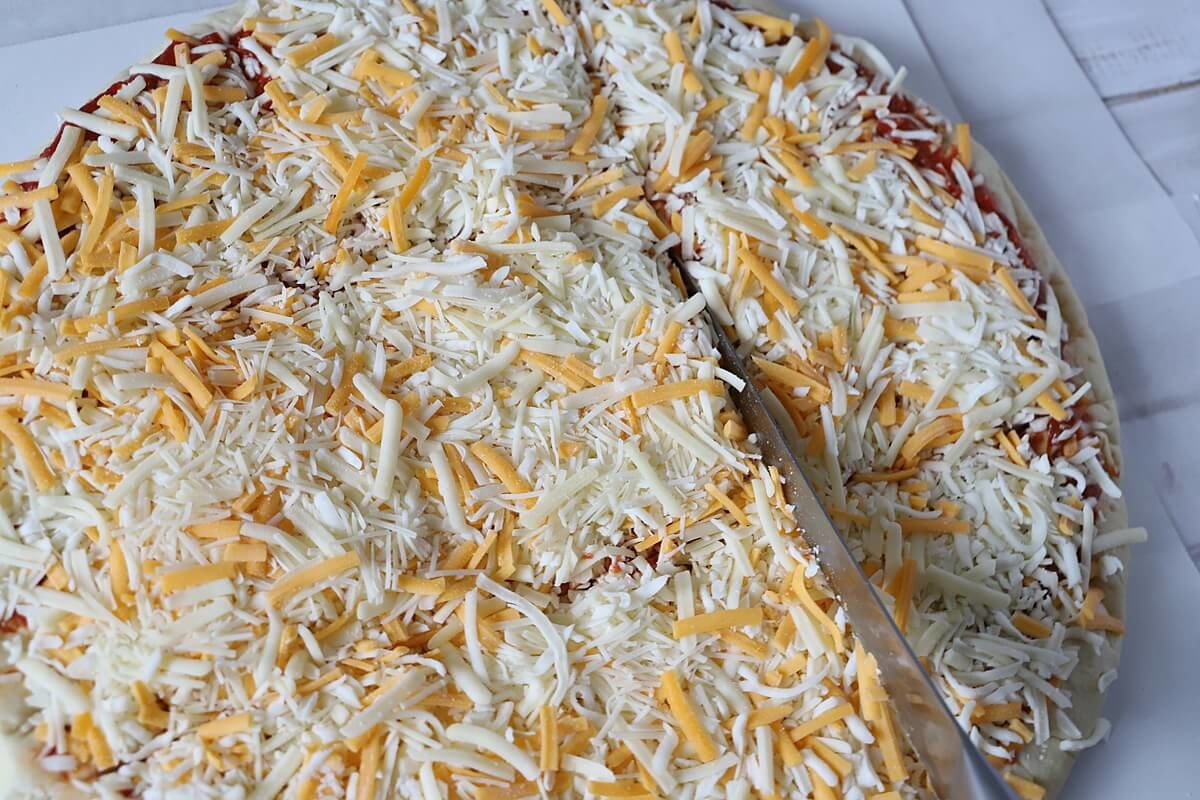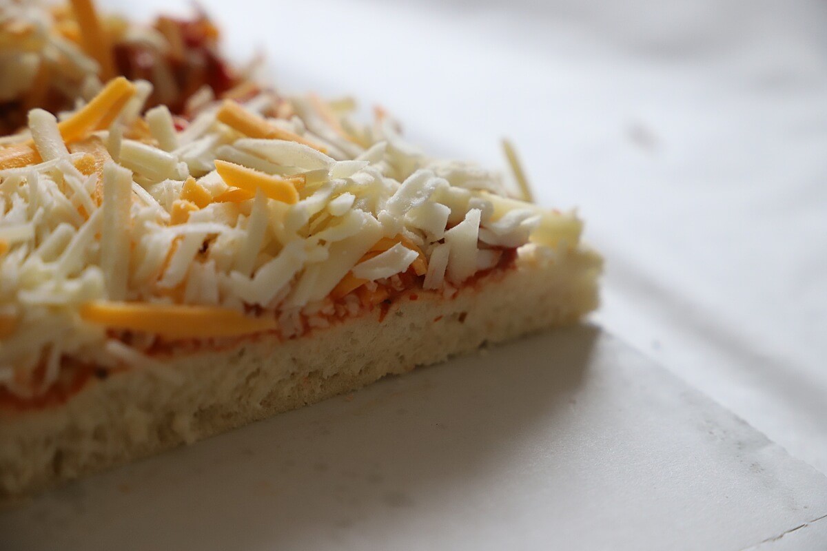 先ほどと同様、チーズはあらかじめ少しよけておき、具材をのせてから、その上にのせます。