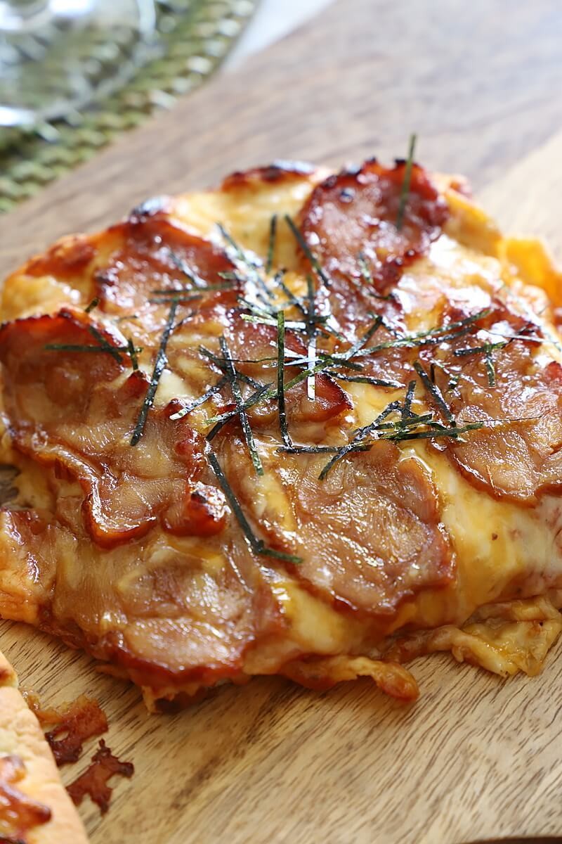 照り焼きピザに海苔をのせれば、さらに美味しそうに見えます!