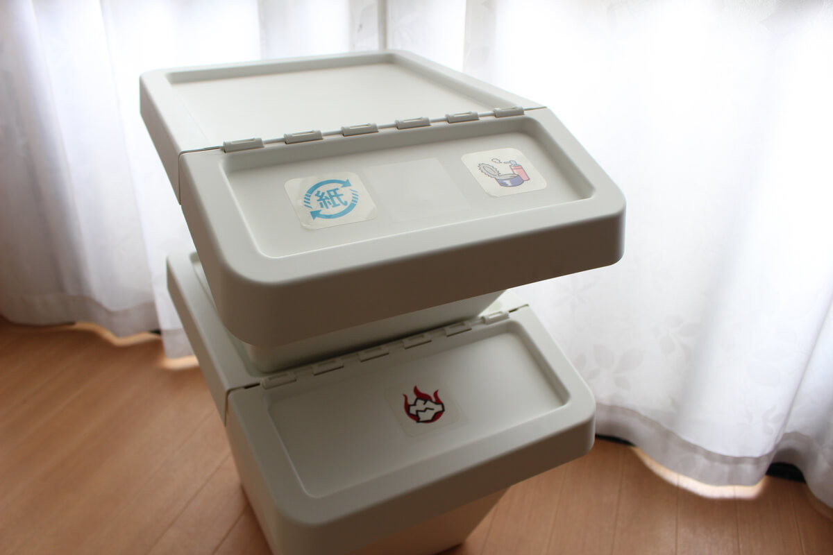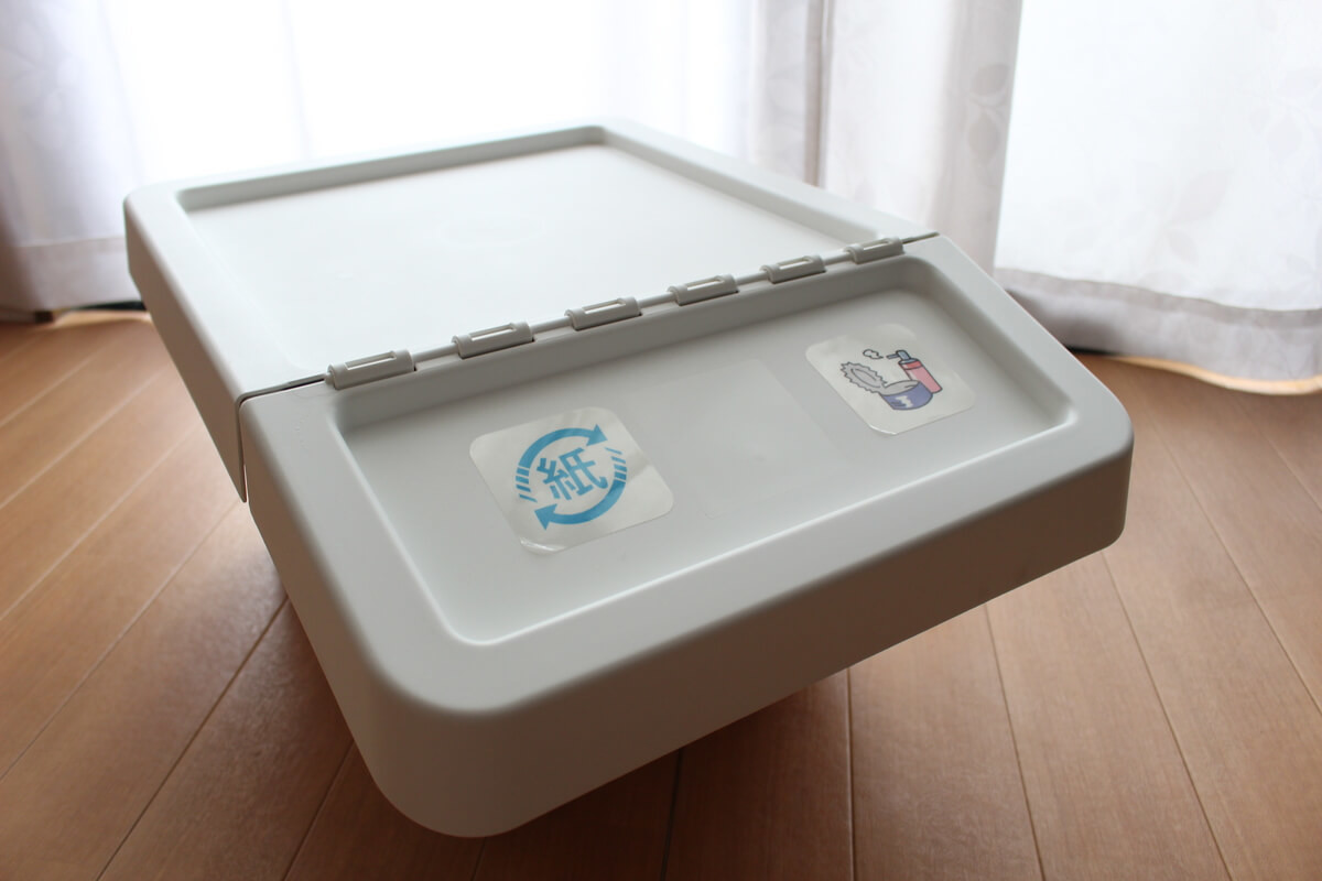 我が家では、可燃ゴミと資源ゴミ(プラスチック)に使っています。 シンプルなデザインなので、手作りのラベリングもよく映えます。