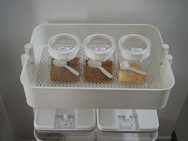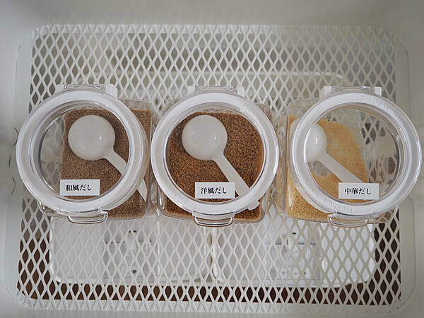 和風だしなどの量は砂糖などと比べると少ない粉類に使用しています。